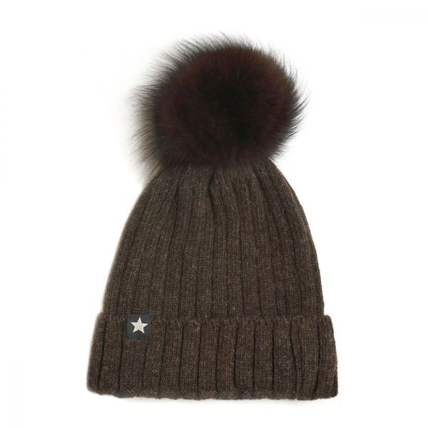 Balaclava Wool Alpaca Pompoms, Sand Melange - Huttelihut
