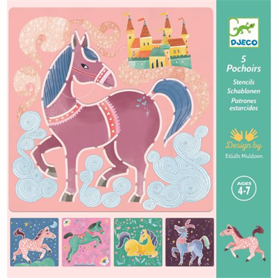 Beskrivelse Flotte sjablonger fra Djeco. Inneholder 5 sjablonger i lekre farger med motiv av fine hester. Brukes gjerne sammen med Djecos blyanter eller tusjer av høy kvalitet. |