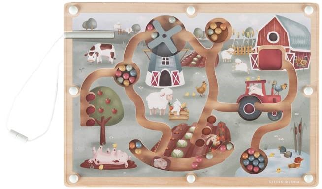 Beskrivelse Ta en eller flere kuler med den tilhørende magnetiske pennen og flytt dem til et sted du ønsker. Du kan f.eks. flytte alle de blå ballene til dammen og to røde baller til epletreet. På veien kan du møte hindringer som det roterende traktorhjulet og bladene på vindmøllen. |