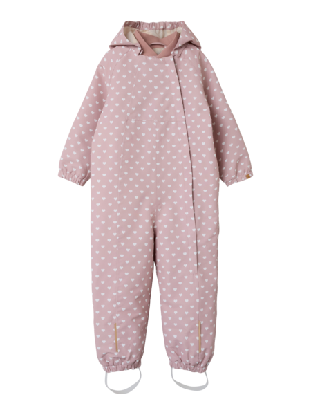 Beskrivelse - Product Type : Snowsuit - Functionality : Waterproofness 8,000mm, Breathability 3,000g/m2/24h, Fully taped seams for a complete waterproof protection, Membrane between the lining and shell fabric provides waterproof and windproof protection, Windproof - Sleeve : Long sleeves - Cuffs : Elasticated cuffs - Closing : Zip fastening - Leg details : Detachable and adjustable foot loops made of durable rubber for a comfortable fit around the foot - Extra details : Detachable hood for safety, Decorative reflective details, Piping detail, Elasticated waist, Label - Wash/Finish : ECO Water-repellent treatment gives you a guarantee that fluorine substances have not been used to make the product water-repellent, PFAS FREE - No fluorine compounds are used in our products - Print : Print repeated across the entire surface of the product |