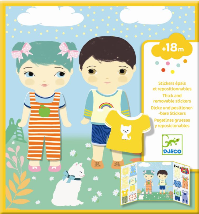 Beskrivelse De to barna har kun på seg undertøy. Det er fint nok for dem, for det er ikke kaldt der de leker. Men barnet ditt kan kle dem på med klistremerkeklær. Det er nok av klær å velge mellom. For eksempel kan det ene barnet få seg en fin kjole, mens den andre kan få noen kule snekkerbukser. Klærne kan tas av og på og skiftes så ofte man vil. Arket er ganske lite, og er derfor fint å ha med seg på bilturer, restauranter eller andre steder hvor det kan være greit med litt rask underholdning. Men det er morsomt å leke med, så dere kan også ta den med på hytta eller kanskje ta den med og vise den til bestemor. Aktiviteten er god for trivselen til barnet ditt og evnen til å lære nye ting: Gir barnet ditt rikelig med muligheter til å slippe fantasien løs. Barnet ditt kommer godt i gang med finmotorikken. Måler 21,5 x 23 cm. Passer fra 18 mdr. til 3 år Aktivitetsbøker og esker med klistremerker kan barnet ditt bruke om og om igjen. De forskjellige småtingene kan festes og blir ikke så lett borte. Settet tar ikke så mye plass, og de er derfor en praktisk måte å la barnet ditt være kreativt på, som raskt kan trekkes frem når barnet ditt har bruk for å gjøre noe hyggelig i bilen, på restauranten eller bare som avslapning på hytta eller hjemme. |