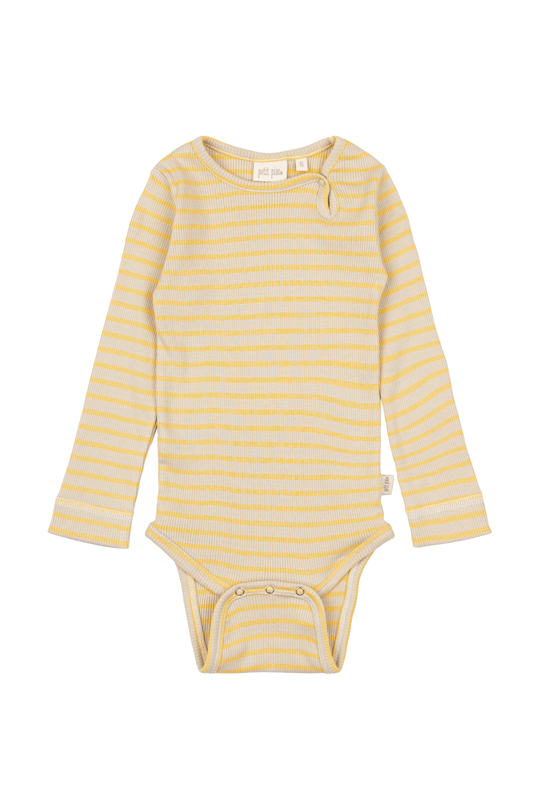 Body L/S Modal Striped, Yellow Sun/Dark Off White - Petit Piao