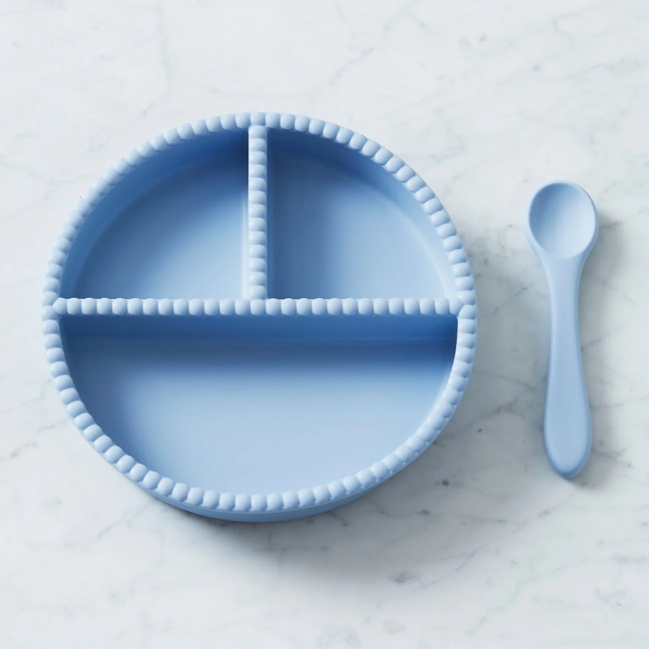 Beskrivelse Et yndig, bobleinspirert barneservise. Settet består av en delt tallerken for kresne småspisere og en skje. Tallerkenen kommer med en sugebase som fester seg til glatte overflater for å minimere søl for små som lærer å spise selvstendig. Laget av matgodkjent silikon og tåler høye temperaturer og egner seg for bruk i mikrobølgeovn og oppvaskmaskin. Passer fra 4 måneder. Tallerken: 18,5*18,5*3cm Skje: 14cm*3cm 100 % LFGB matkvalitets silikon Fri for BPA, PVC, ftalater, bly, kadmium og andre skadelige kjemikalier Tåler oppvaskmaskin, mikrobølgeovn og stekeovn (varmebestandig opp til +220°C) Testet i henhold til siste EU-forskrifter Farger og dimensjoner: |