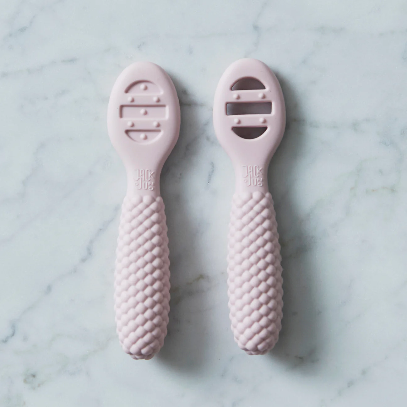 Beskrivelse Disse smarte pre-skjeene er laget for å lette babyens reise til selvmating. Stage 1 har en solid overflate, perfekt for glatte pureer. Når den lille vokser, kan de gå over til trinn 2, som har åpne spor for å øse tykkere mat som potetmos. Begge skjeene har sensoriske prikker på sidene, noe som gir mild lindring for tannkjøttet. Den boblete designen gjør det enkelt for små hender å gripe. Passer fra 4 måneder. Materiale: Matkvalitets silikon av høyeste kvalitet (LFGB-sertifisert) Fri for BPA, PVC, ftalater, bly, kadmium og andre skadelige kjemikalier Tåler oppvaskmaskin, mikrobølgeovn og stekeovn (varmebestandig opp til +220°C) Mål: 10*2 cm |