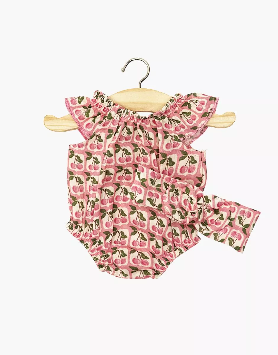 minikane barboteuse clara et son headband en coton au temps des cerises