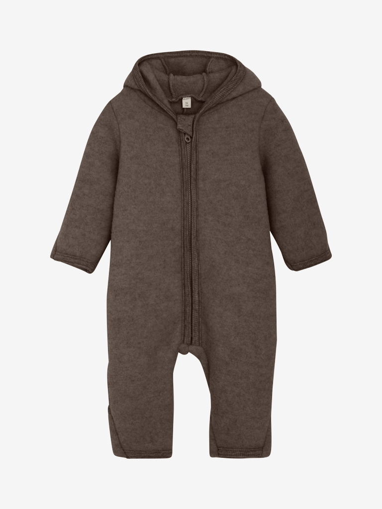 Pram Suit Wool Fleece med ører, Brown Melange - Huttelihut
