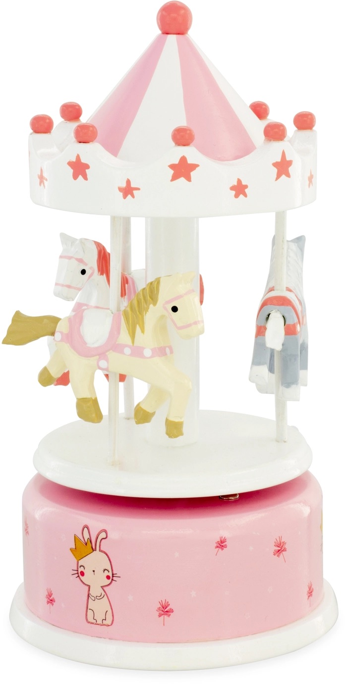 Beskrivelse En vakkert dekorert spilledåse med små hester med delikat design og duse farger. Den er akkompagnert av en musikkboks som spiller det berømte temaet "All the Pretty Little Horses". For å aktivere musikken, hold i bunnen av karusellen mens du dreier teltet med klokken. Denne leken vil glede både store og små med sine detaljerte detaljer og myke musikk. |