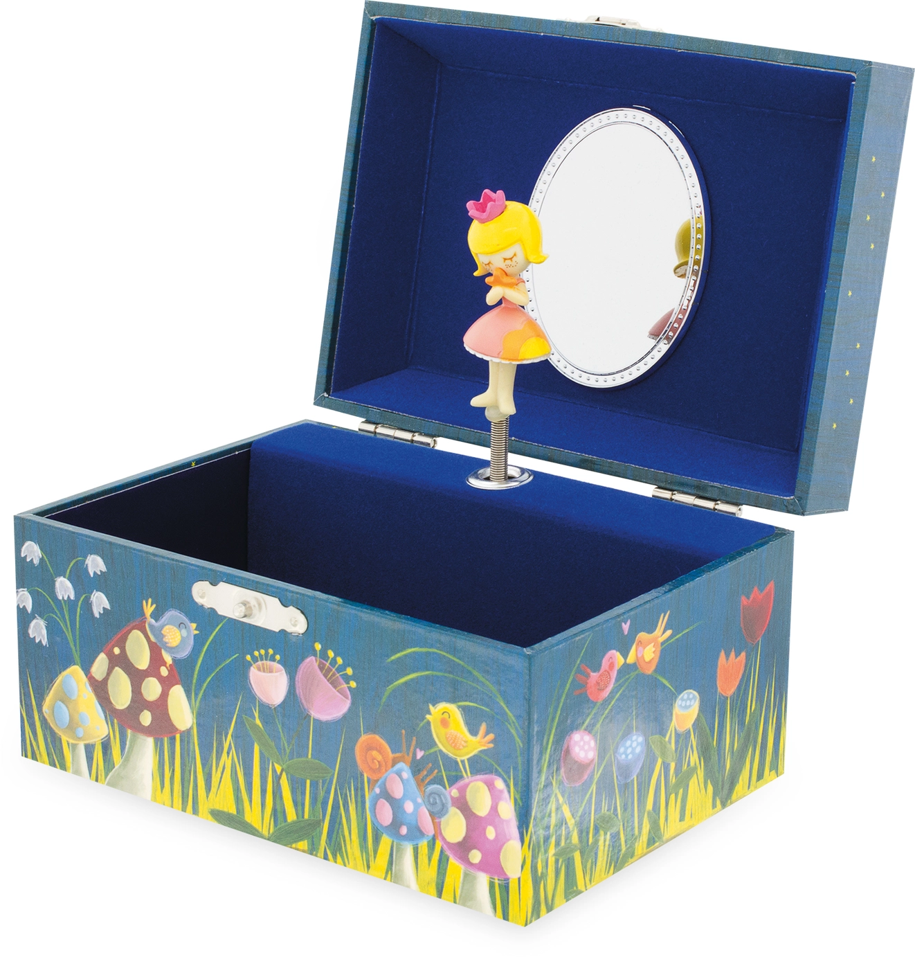 Beskrivelse Klassisk smykkeskrin med et eventyrlig motiv. Trekk opp, og når du åpner smykkeskrinet begynner en liten prinsesse å spinne til lyden av en nydelig liten sang. Melodi: Legends of the Viennese Forest - Ödön von Horváth |