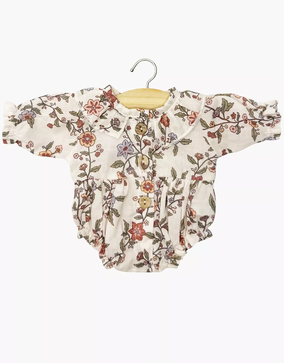 Dukkeklær, Léonore - Romper, hvit med blomster