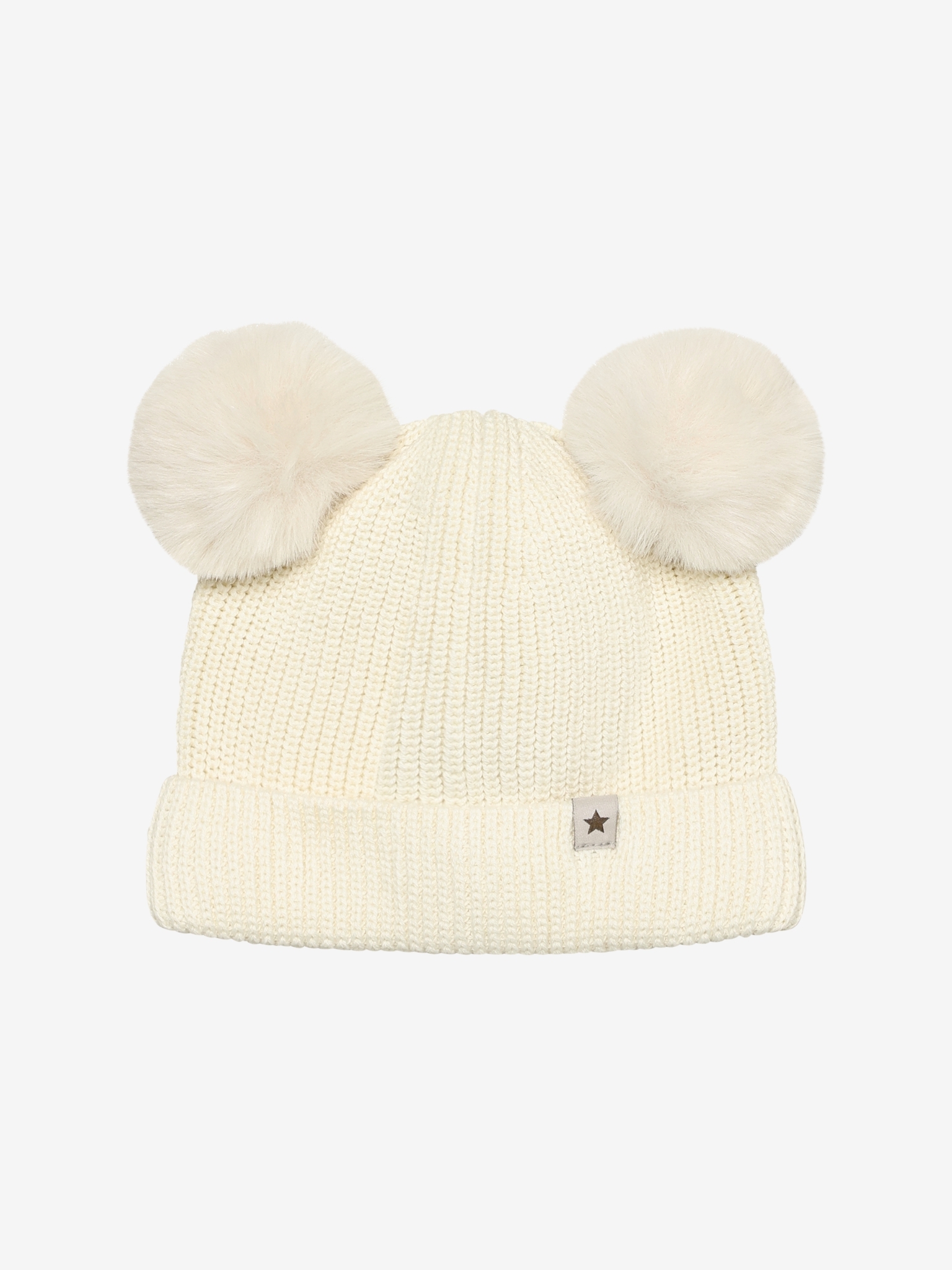 Hat Knit w. Pompoms, Antique White - Huttelihut