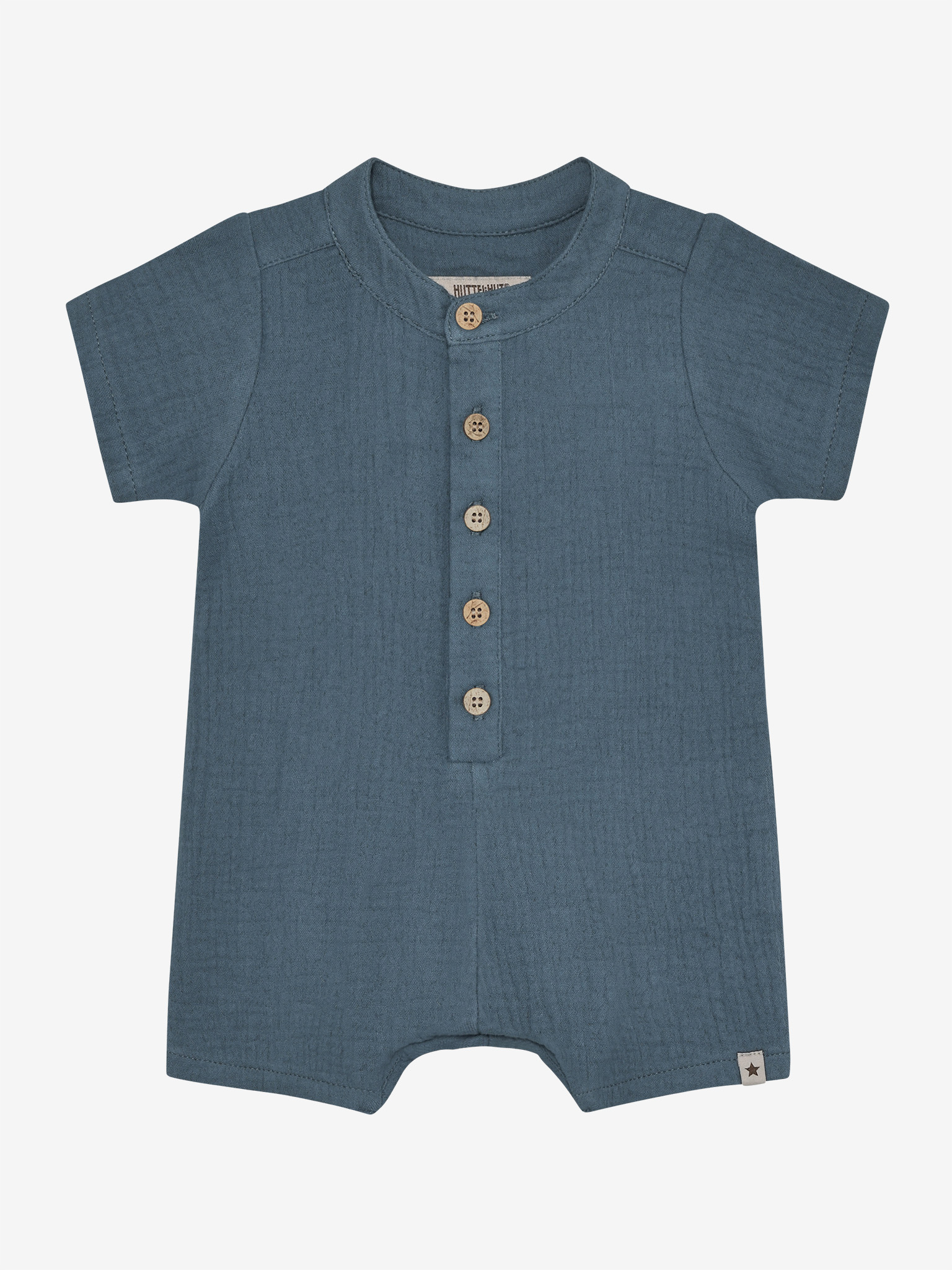 Beskrivelse En lett og luftig sparkedress, perfekt for varme sommerdager. Den er laget i myk musselin som føles behagelig mot huden og gir god komfort hele dagen. Den lette kvaliteten og den avslappede passformen sørger for god bevegelighet, samtidig som trykknapper gjør den enkel å ta av og på ved behov. En praktisk og sjarmerende sommerfavoritt som passer perfekt til både lek, trilleturer og koselige dager ute. |