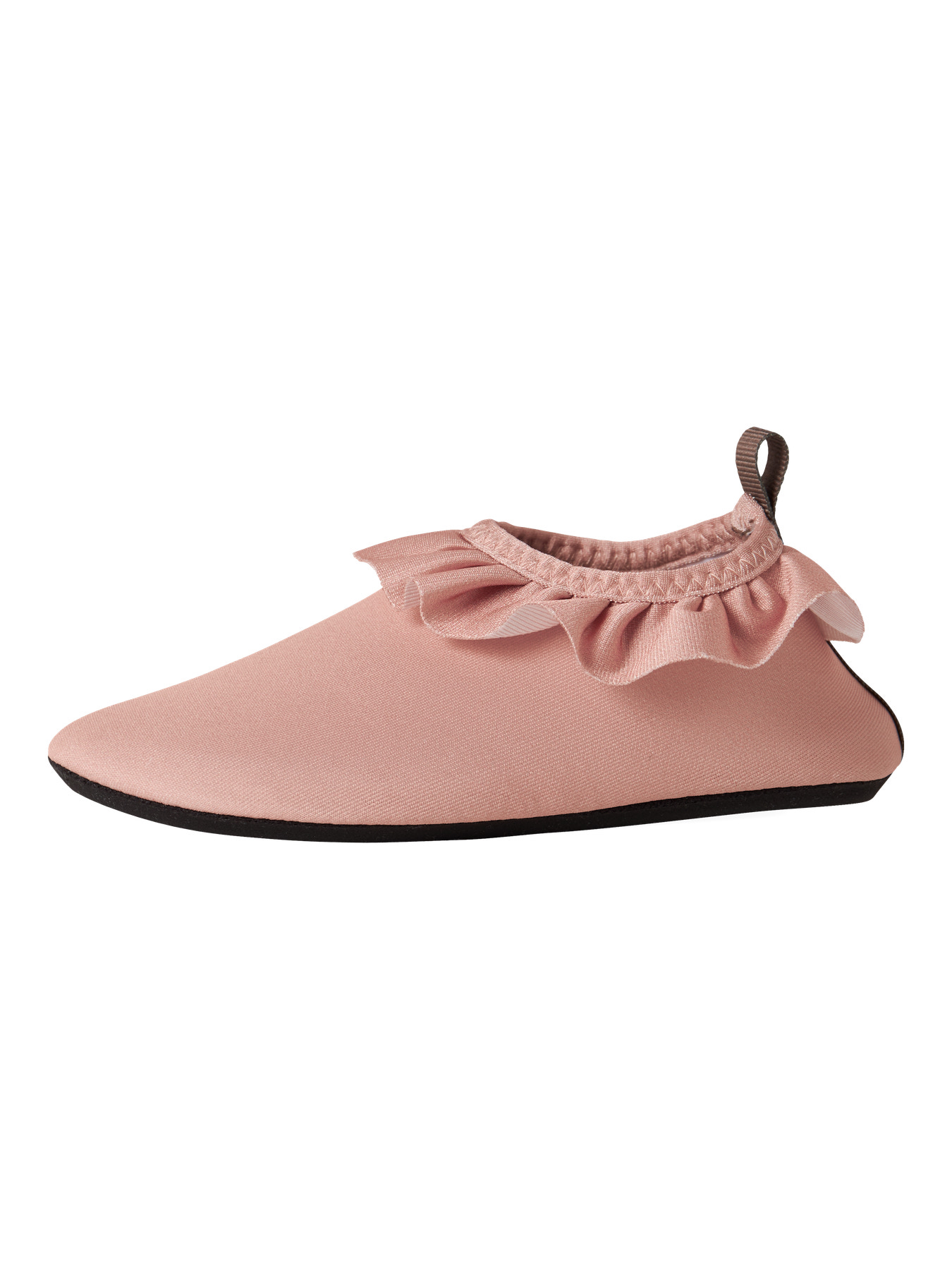 Beskrivelse Et par lette og fleksible badesko som er perfekte for lek ved stranden, i bassenget eller på svaberg. Det myke materialet sitter behagelig på foten og gir god bevegelighet, samtidig som den sklisikre sålen gir bedre grep på glatte underlag. Materialet har også UV-beskyttelse som bidrar til å beskytte små føtter mot solens stråler under lek utendørs. Modellen heter NMFFREDI FIR UV Swim Slippers fra Lil' Atelier i fargen Misty Rose – et praktisk og søtt tilbehør til sommerens badeeventyr. ???? |