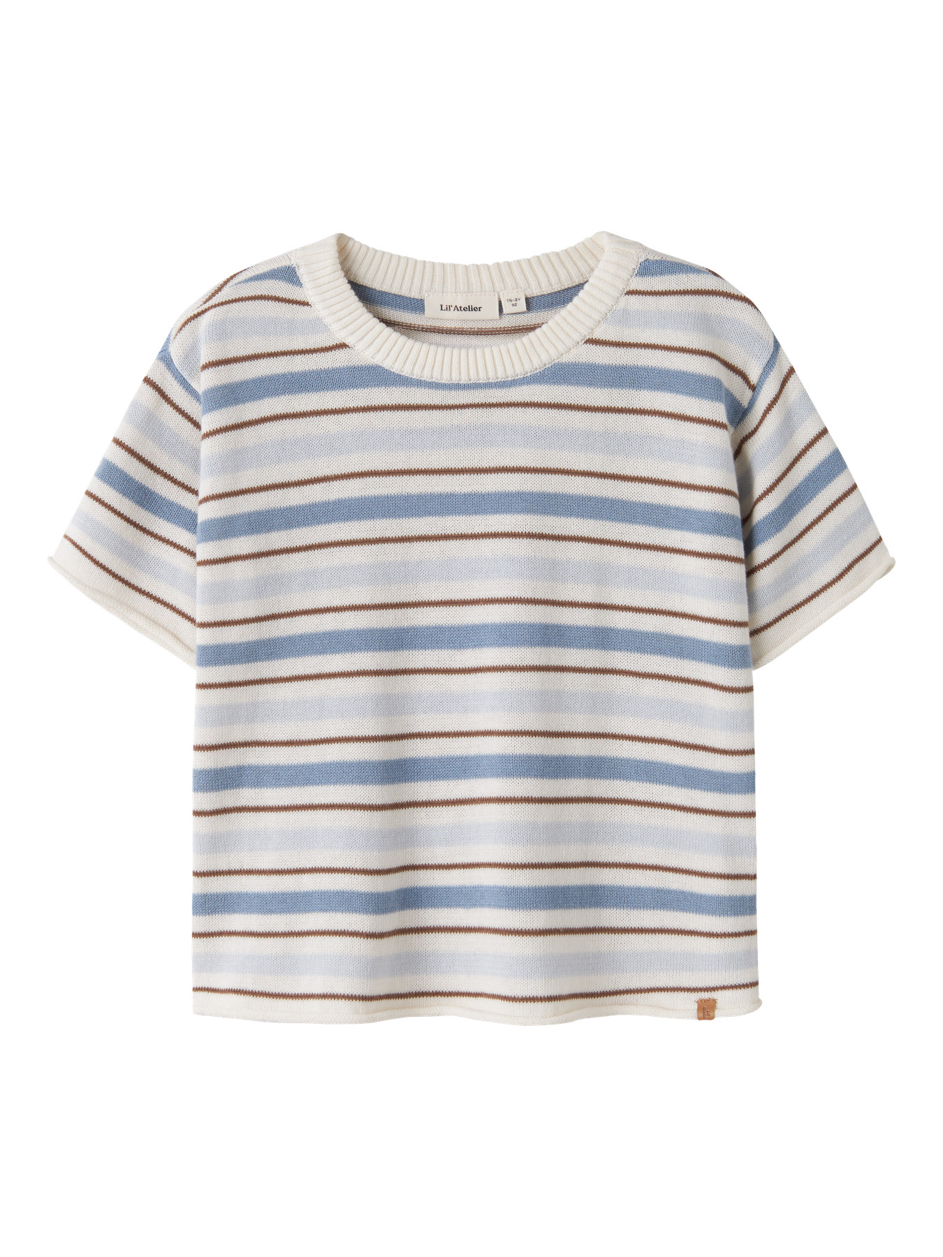 Beskrivelse En lett og luftig strikkegenser med en avslappet passform som gir god bevegelighet og komfort gjennom hele dagen. Den myke strikkekvaliteten gjør den behagelig å ha på, samtidig som den passer perfekt til både lek og rolige dager. Fargekombinasjonen i Coconut Milk og Dusty Blue gir et harmonisk og tidløst uttrykk som er enkelt å style med både bukser, shorts og selebukser. Modellen heter NMMHITO SS Loose Knit fra Lil' Atelier – en sval og stilren favoritt til sesongen. ???? |