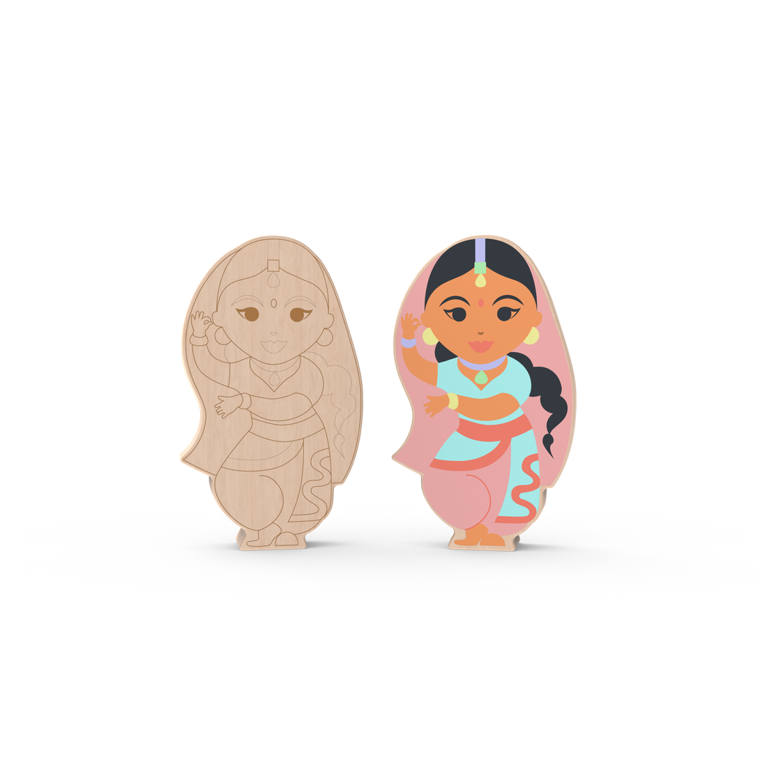 Beskrivelse Denne indiske Bollywood-stjernen er en karakter fra Roaries "World of Colour"-serie; multikulturelle trefigurer som man kan male, leke med og stille ut. Trefiguren har hjelpelinjer på begge sider for at det skal være lettere å male. Passer perfekt sammen med Roaries akrylmaling. Passer best fra 5 år. Laget av bøketre. Certified with UKCE safety and CPSC safety |