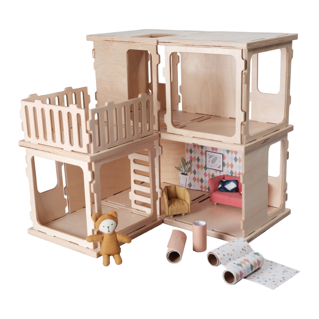 Beskrivelse Oppdag Fabelabs fantastiske byggesett/dukkehus BUILD. Med tidløs estetikk og tilgjengelig design gir Fabelab BUILD rom for hvert barns unike fantasi. Enkel å montere og dekonstruere. Fabelab BUILD kan bli til en rekke forskjellige konstruksjoner. Barna kan virkelig bringe ideene sine ut i livet og være sin egen arkitekt. Fabelab BUILD-serien er designet av arkitekten og designeren Michaela Weisskirchner-Barfod og kombinerer hennes kjærlighet for design, lek og historiefortelling. Inneholder: 26 deler 100% kryssfiner |