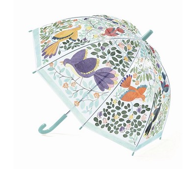 Beskrivelse Nydelig barneparaply i transparant plast og med flott mønster av fulger og blomster. Paraplyen har en lyseblå kant nederst og lyseblått håndtak. Paraplyen har en stang på 68 cm og selve paraplytoppen er 70 cm i diameter. |