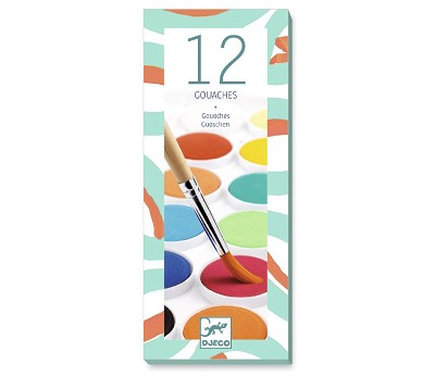 Skrinet kommer med 12 ulike vannfarger og en pensel.