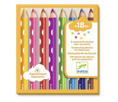 Beskrivelse Åtte fine fargeblyanter laget for de minste kunstnerne. Blyantene er ergonomisk utformet med sin trekantede fasong,. De er svært gode å holde i og enkle å tegne med. Med disse sterke, flotte fargene kan man virkelig utfolde sin kunstneriske frihet. |