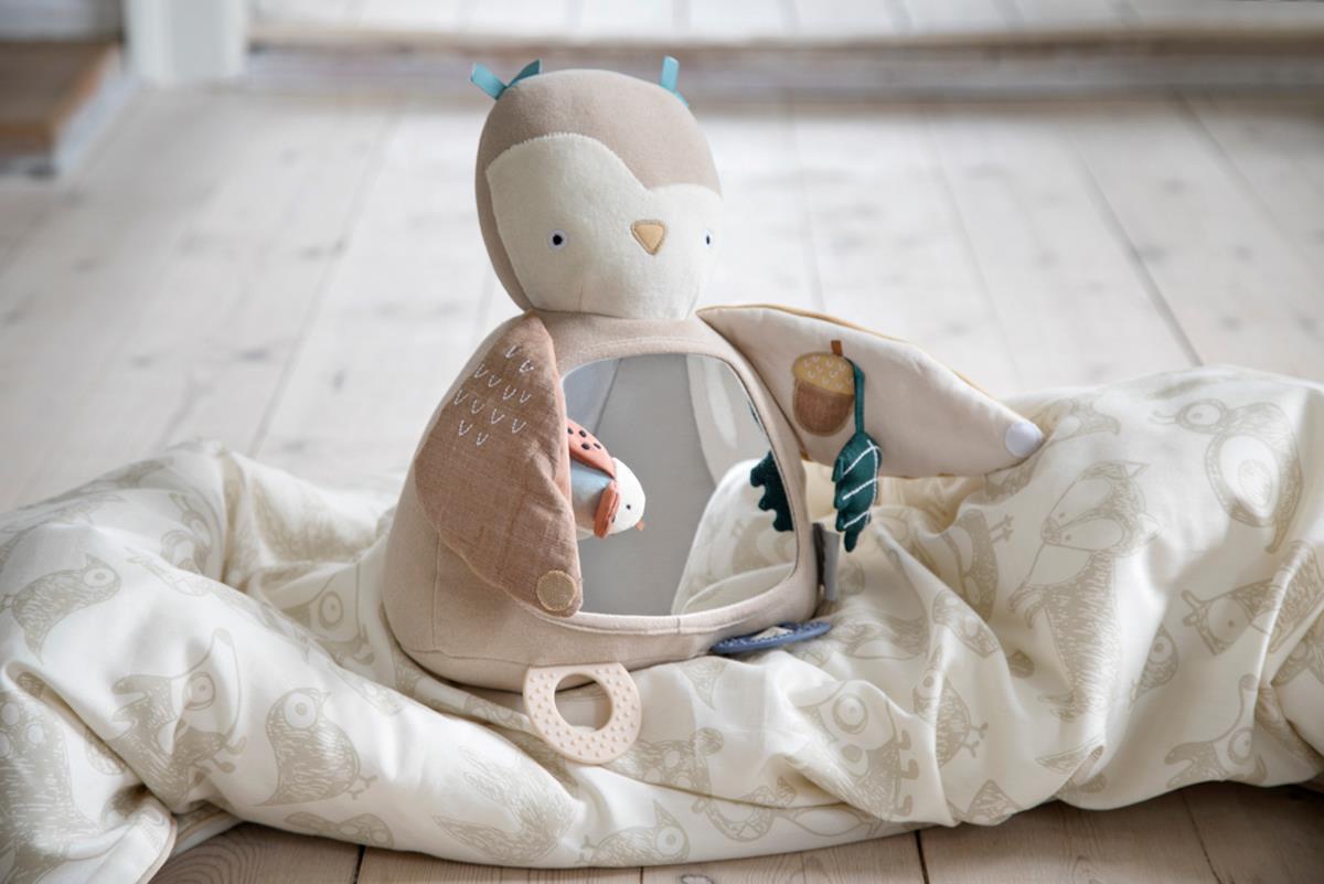 Beskrivelse Søt og morsom aktivitetsleke formet som uglen Blinky med et stort babysikkert speil, biteringer og elementer som kan utforskes og utforskes. Blinky kommer i fargen maple beige og tilhører Sebra Woodland-kolleksjonen. |
