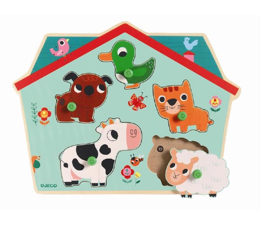 Beskrivelse Et flott puslespill med bondegårdsmotiv med en ekstra morsom og lærerik funksjon. Løft brikken og legg den på plass for å høre hva slags lyder dyrene lager. Praktisk knott å holde i som de minste setter pris på. |