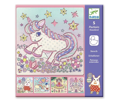 Beskrivelse Flotte sjablonger med eventyrmotiv fra Djeco. Inneholder 5 sjablonger i lekre farger med motiv av enhjørninger, kaniner regnbuer mm. Brukes gjerne sammen med Djecos blyanter eller tusjer av høy kvalitet. |