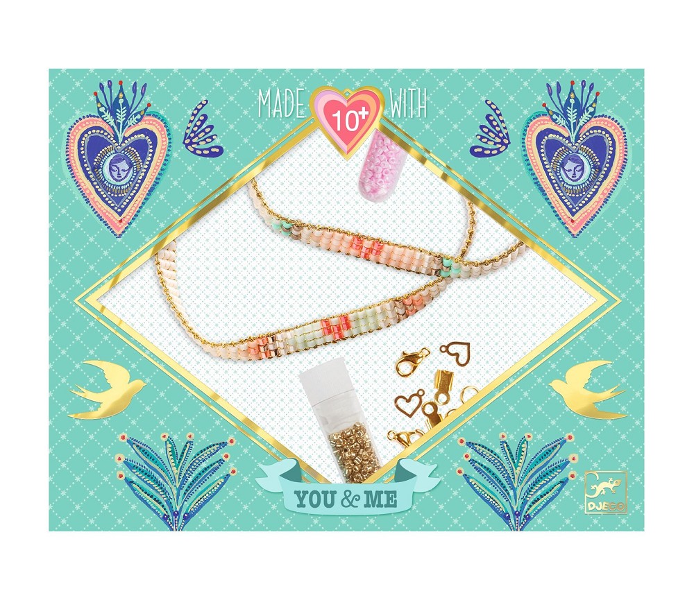 Beskrivelse I dette nydelige hobbysettet fra Djeco, får du med alt du trenger til å lage to flotte armbånd med en medfølgende vev. Det følger med en instruksjonsbok, og ved å følge de forskjellige stegene og malene, kan man enkelt veve armbånd med små fargede perler. Armbåndene du lager kan du beholde selv, eller gi et til en venn. Det følger med to små gaveposer og to kort i esken. Passer fra 10 år. |