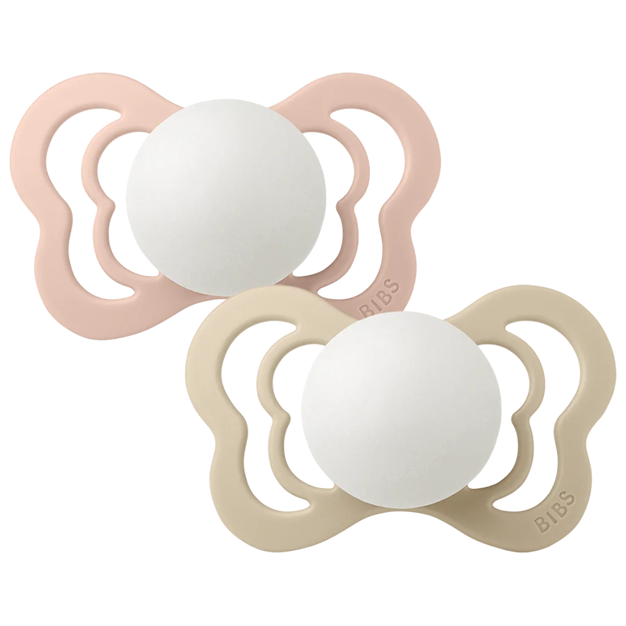 Beskrivelse Couture-smokken fra BIBS kommer med en anatomisk brystvorte – også kalt kjeveortopedisk brystvorte – som er rund på toppen for en naturlig passform til babyens gane med en vinklet tupp for enkel plassering av tungen. Skjoldet minner om en sommerfugl, og har store luftehull for optimal pust og komfort for barnet. Lett skjold laget av naturgummi/latkes; 100 % trygt og matgodkjent materiale Samsvarer med den europeiske standarden EN 1400+A2 Designet og laget i Danmark/EU |